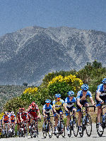 Annette and I spent most of the day on Saturday May 19th up on the mountian photographing Stage 7 of the AMGEN Tour of California. The stage route was similar to that of 2011, except that it started in Ontario and like last year, it ended at the Mount Baldy ski lifts. The route took the riders up the Baldy Road to Baldy Village and along the Glendora Ridge Road (GRR) to Glendora Mountain Road (GMR). They followed GMR down into the East Fork of San Gabriel Canyon and continued west to Highway 39 and then down the San Gabriel Canyon into Azusa. A left turn put them eastbound on Sierra Madre Ave which took them over to the base of GMR where they turned north to head back into the mountains. The ride up GMR brought them back to GRR and then back to Baldy Village. They continued on through Baldy Village on their way up to the ski lifts - the steepest part of the stage. Our day on the mountain began at 8:00 AM when we left home, Annette on her bike accompanied by one of our riding friends, Matt and I driving the SAG vehicle with supplies of food, beverages, and various emergency supplies. I parked the car near a road manintenace shed which is about 8.5 miles up GMR and awaited the arrival of Annette and Matt. I had my bike on the car so that we could ride to the spots where we wanted to shoot our pictures from. We shot the race at two points, the first one was about two miles east of the GMR/GRR fork where we caught the riders heading west outboud from Baldy. Then, after all of the riders and the fleet of supprort vehicles had gone by, we rode back over to the shed on GMR which is about 1 mile west of the GMR/GRR fork and caught the riders as they climbed up the final road segment which leads to the shed. |