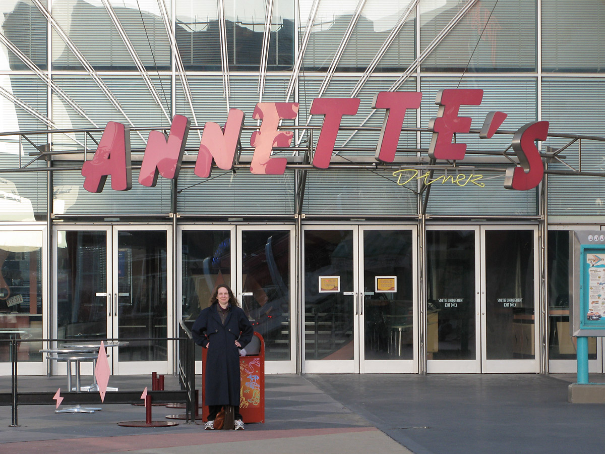 Annette in front of "Her" Diner in Disney Village
