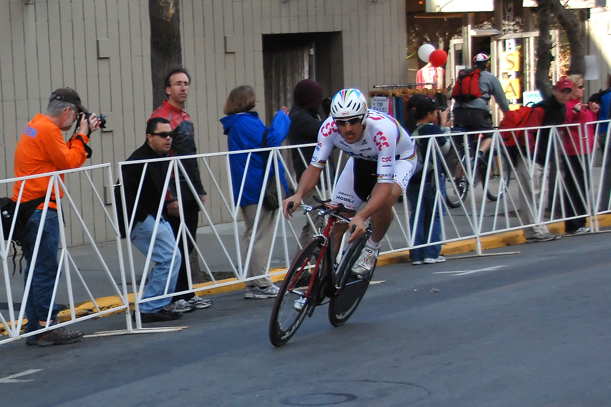 Fabian Cancellara taking the corner at University & Cowper